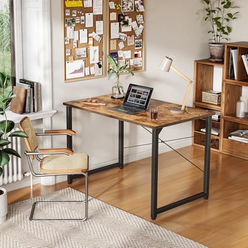 CubiCubi Computer Desk 47″ Study Writing Table for Home Office, Modern Simple Style PC Desk, Black Metal Frame, Deep Brown